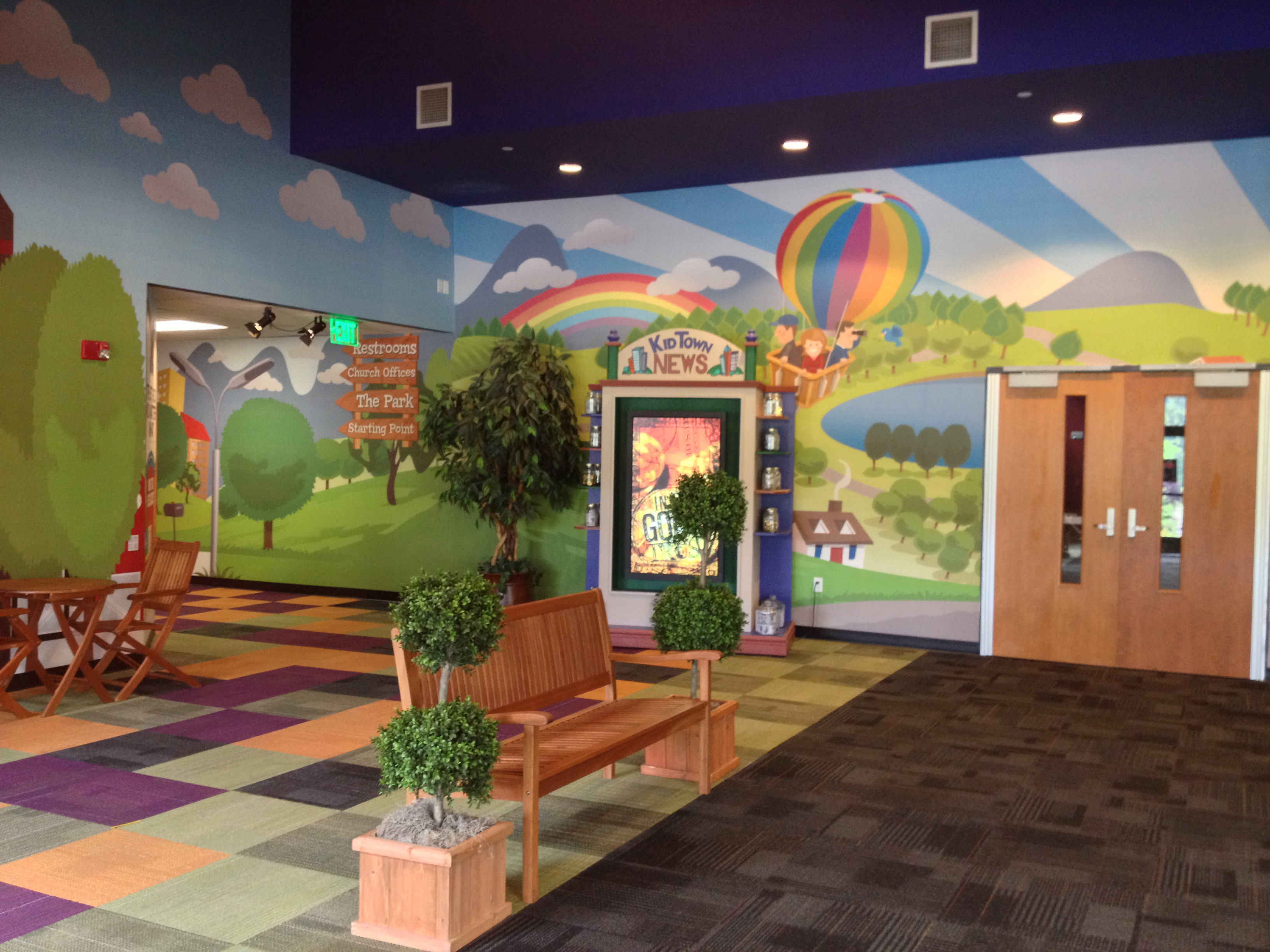 I did my first major spatial design project at New Life Church in Renton, Washington. Overseeing everything from new construction to interior design, murals, way finding–and the challenge of transforming a gymnasium into a dynamic and exciting space.