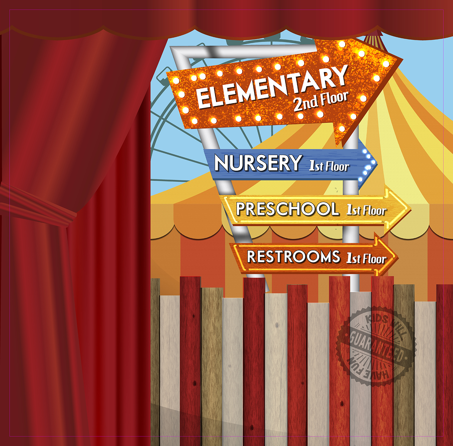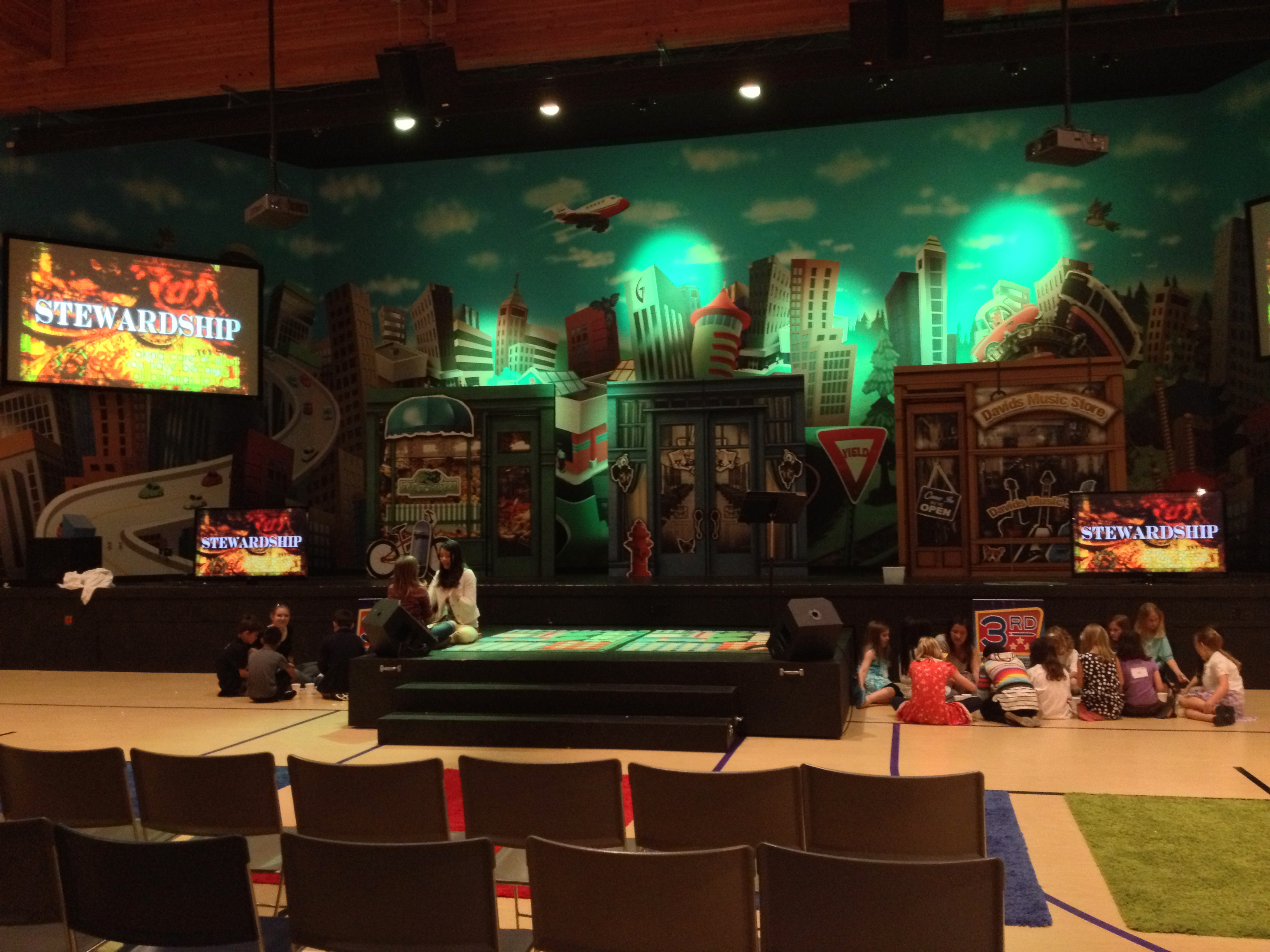 After the success of that project launch in 2012, I worked with over one hundred churches across the United States on kids’ environments, helping recreate boring spaces into fun and engaging spaces for children. Using the local story of each church’s neighborhood and town as inspiration, I created and designed everything from fanciful woodlands, WPA-inspired lodges, racetracks, pirate ships in space, a Saul Bass-inspired vision of Yakima, Washington, and more.